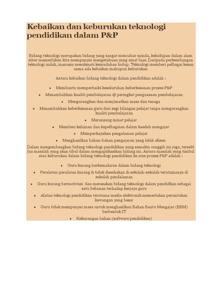 Kebaikan Dan Keburukan Teknologi Pendidikan Dalam
